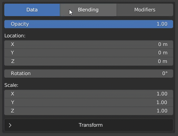 The lower section of the Geometry UI is where you can find the functions for manipulating the terrain. Layer houses the core functions of terrain manipulation. You will be able to change the location, rotation and scale of the layer here. If you are using noise, then this will have infinite details. If you are using a height map, you can move the heightmap off the mesh if you move it too far. You can also adjust the sub-noise details in this tab. Blending houses the functions of the layer. Here you can control how much the current layer shows through any previous layers, you can choose whether the layer will "clip" the previous layer, or swap to a math function to blend with the previous layer. Modifiers is where you can add layer modifiers which will adjust how the layer is displayed, and how it affects the current geometry.
