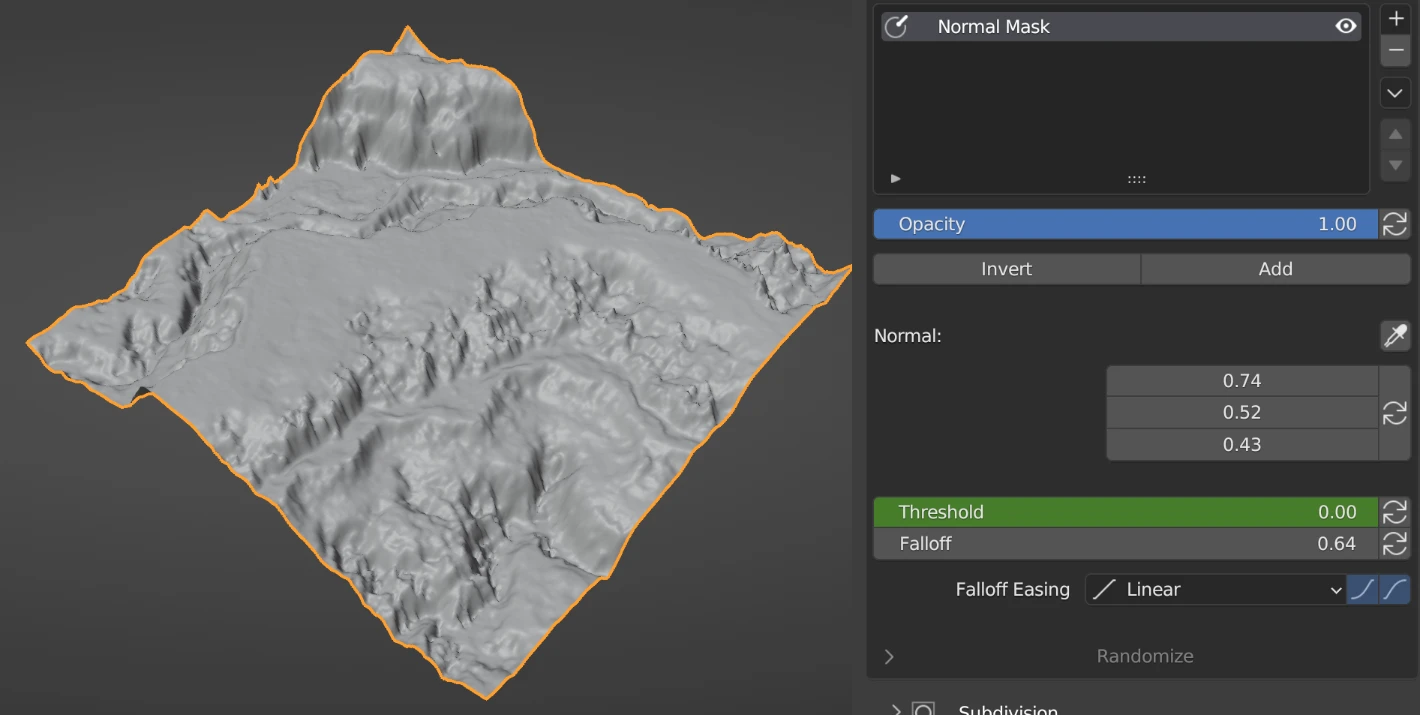 The valley mask feature grants users the ability to focus on either valleys, which are concave areas, or ridges, which are convex areas. With this functionality, users can selectively identify and manipulate these specific topographical characteristics within the terrain.