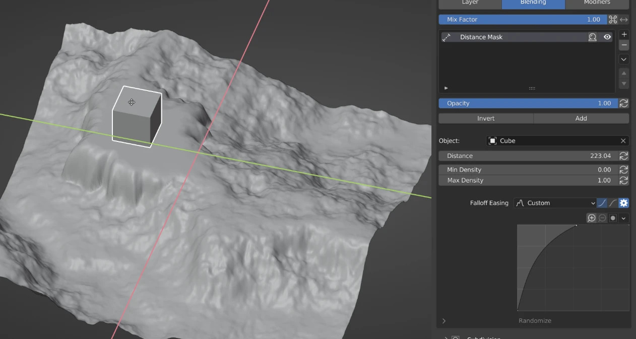 This operator creates a duplicate mesh that stores the attributes on it for this terrain. This mesh is not updated again until the button is pressed. See the Advanced settings below for alternative options to deal with the mesh not updating.